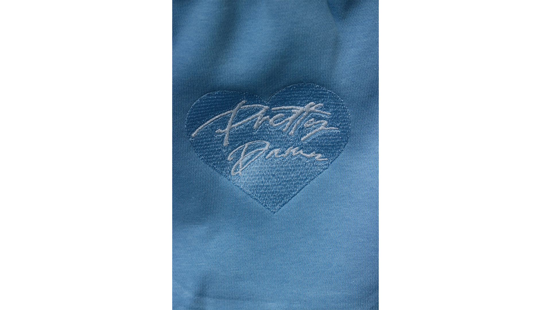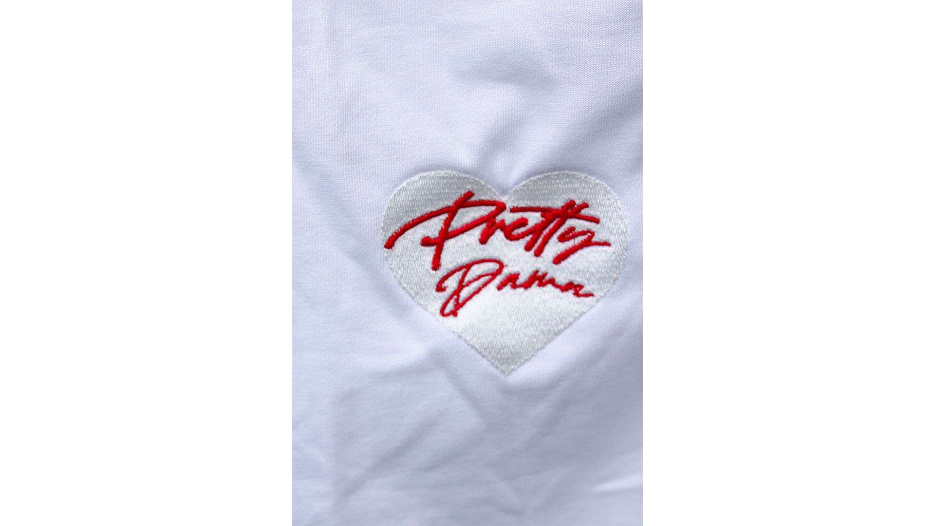 Featuring an embroidered Pretty Damn logo on the front and our iconic appliqué heart design across the back, this hoodie carries the energy of self-belief, love, and creation in motion.